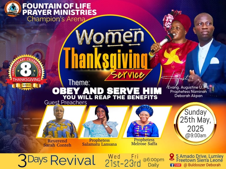 Join us for a powerful prayer service where we come together to seek guidance, strength, and community. Experience uplifting worship, heartfelt prayers, and inspiring sermons that will enrich your spiritual journey. All are welcome to participate and connect with others.